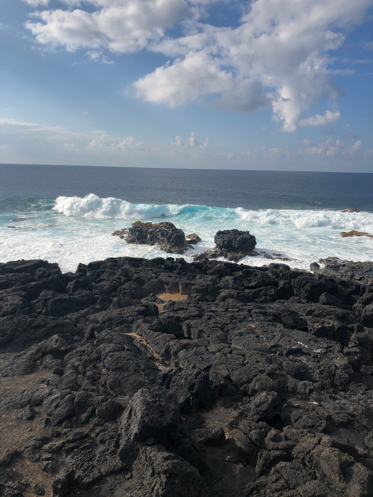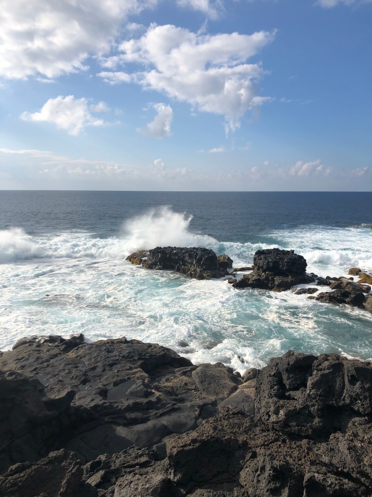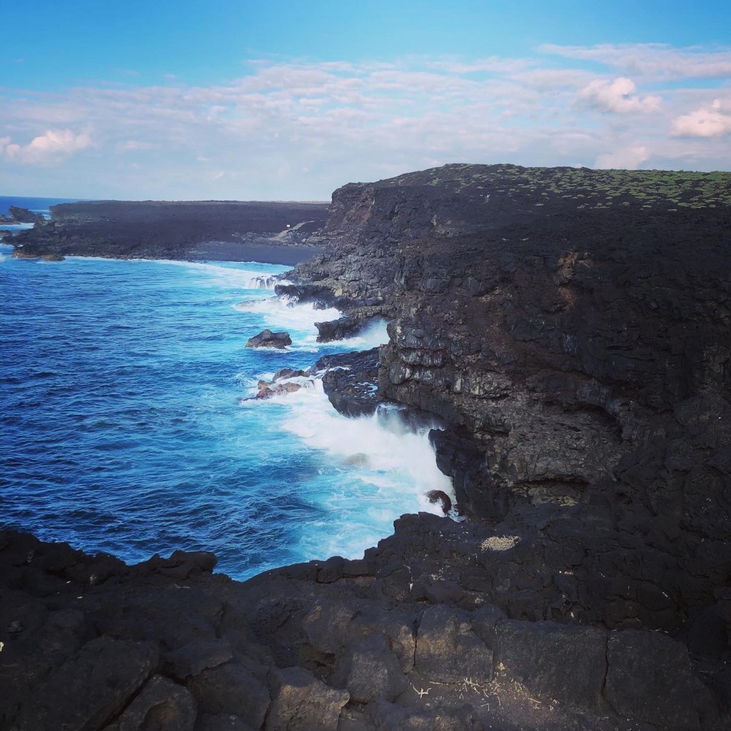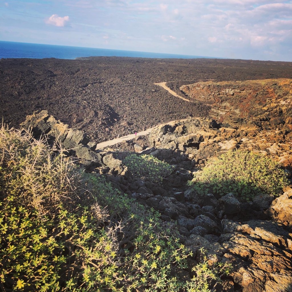 Stien følger havet, det er den ene «se på den bølgen, nei den, eller DEN»-opplevelsen etter den andre. Det vokser noe vegetasjon i lavaen, men ellers er det stein, stein og stein – et tydelig bevis på hvordan det store vulkanutbruddet på slutten av 1700-tallet la mye av den sørlige delen av øya øde.