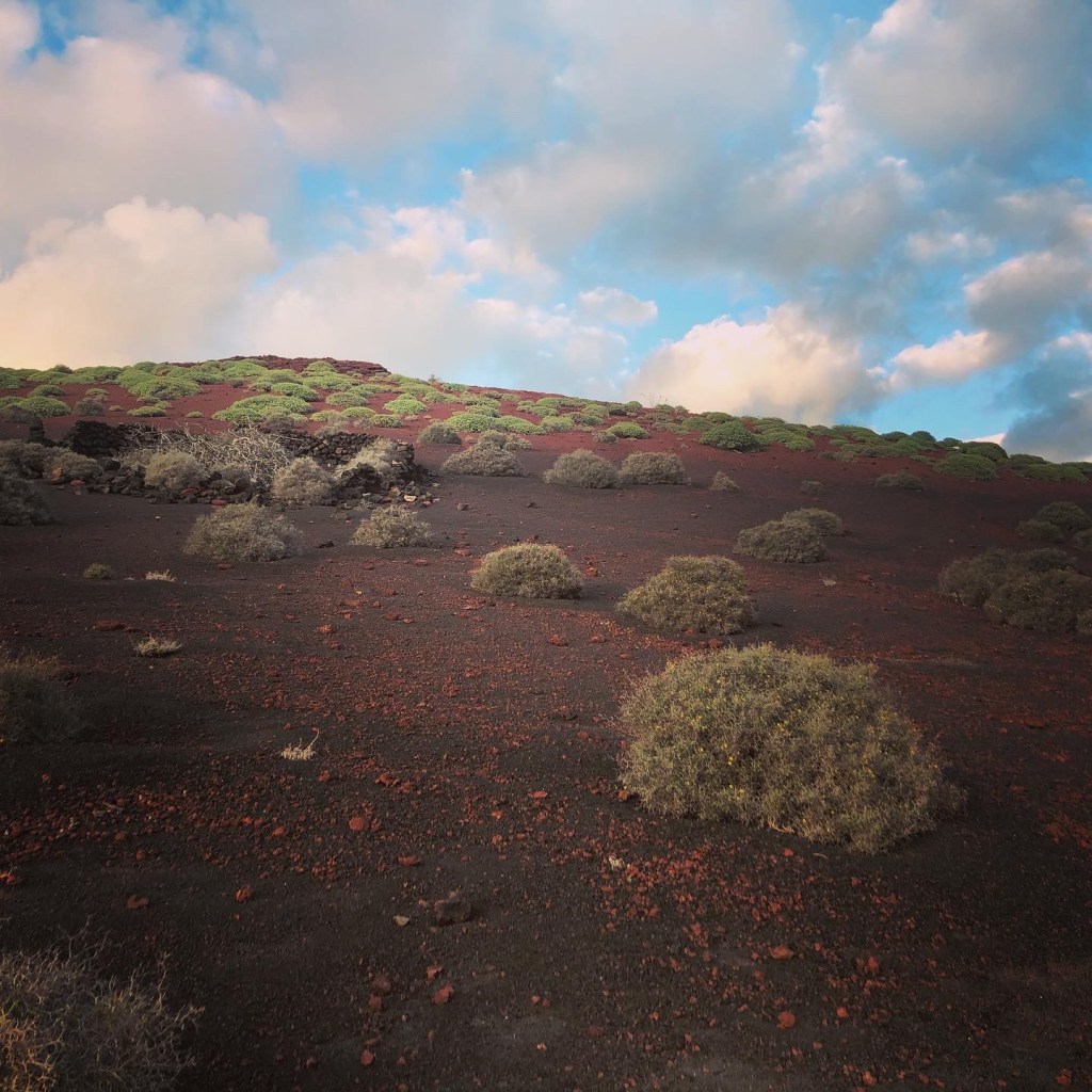 Turen tilbake ble kappløp med tiden. Landskapet var øde, vi passerte bare noen få hus, møtte ingen biler og på den ene gården vi gikk forbi var dyrene tydeligvis alene hjemme. Da veien endelig gikk nedover igjen, skjønte vi at vi var på vei tilbake til El Golfo. Det var på tide – solen var i ferd med å gå ned – og vi visste at da ville mørket veldig fort sige på.
